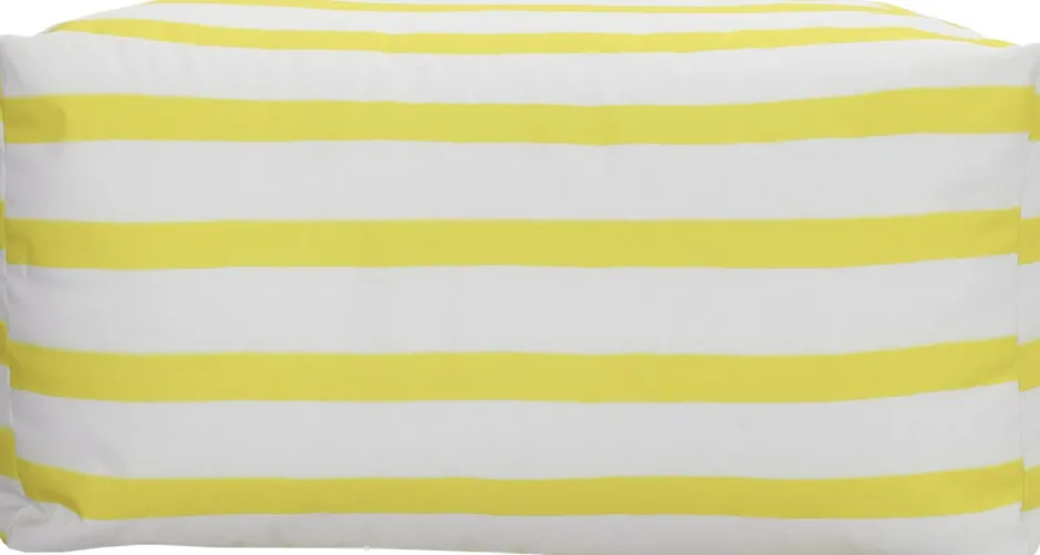 Genieße die Zeit draußen mit diesem coolen Hocker. Mit seinem frischen Streifendesign in gelb – weiß ist er garantiert ein Blickfänger auf deiner Terrasse oder deinem Balkon. Die robuste EPS-Füllung (kleine Styropol-Kügelchen) passt sich deinem Körper an und sorgt für einen guten und bequemen Sitz. Der Stoff kann Wasser vertragen, aber wir empfehlen, den Hocker nach dem Gebrauch trocken zu lagern, damit er lange schön bleibt.