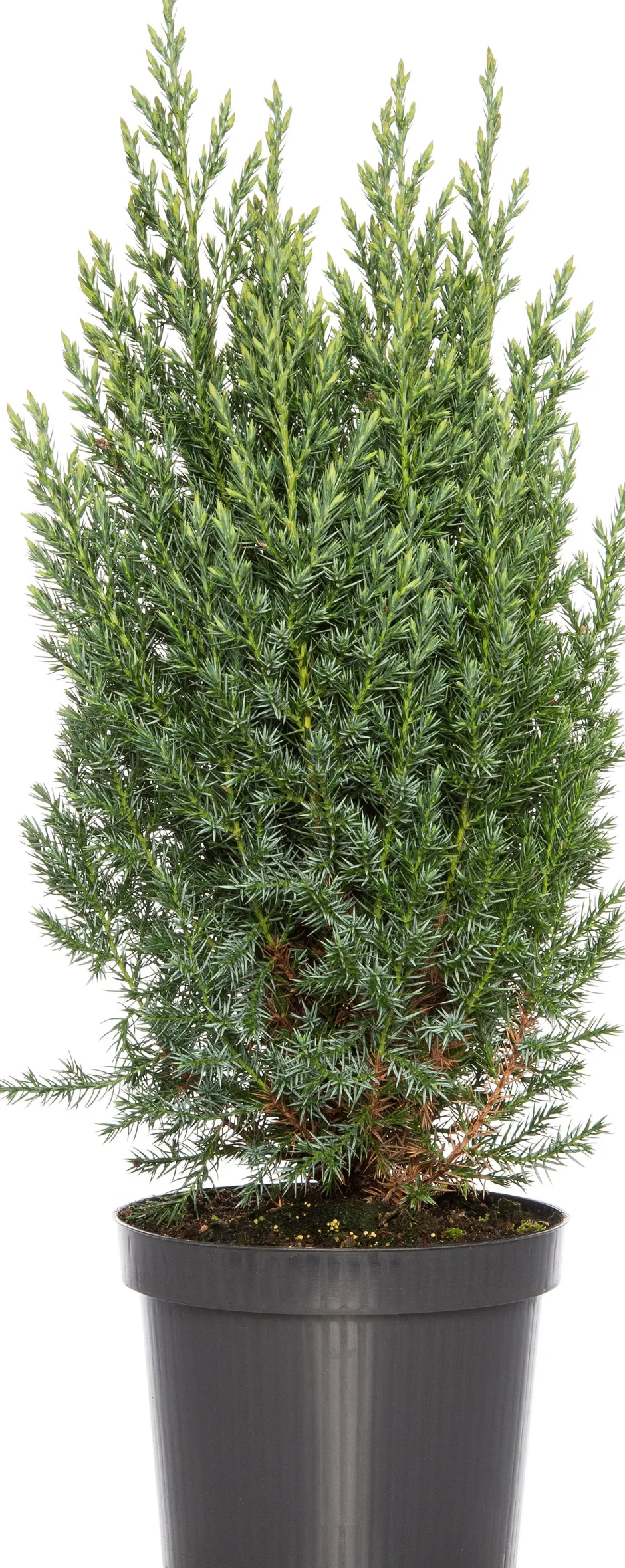 Äußerst robuster Wacholder mit schönem blaugrauen Laub, der von Natur aus in einer konvexen Kegelform wächst. Die Wacholderbeere ist essbar, enthält Vitamin C und Antioxidantien und fördert den Stoffwechsel. Doch auch bei dieser Wunderbeere gilt: Genieße sie in Maßen!