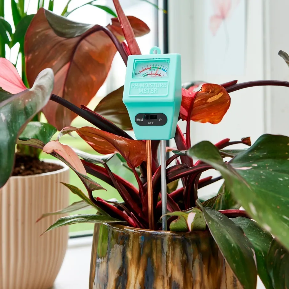 Möchtest du den pH-Wert und die Feuchtigkeit des Bodens in deinem Beet, Pflanzgefäß oder Gewächshaus wissen? Stecke das Messgerät zu ¾ in den Boden und lies die Daten einfach ab.