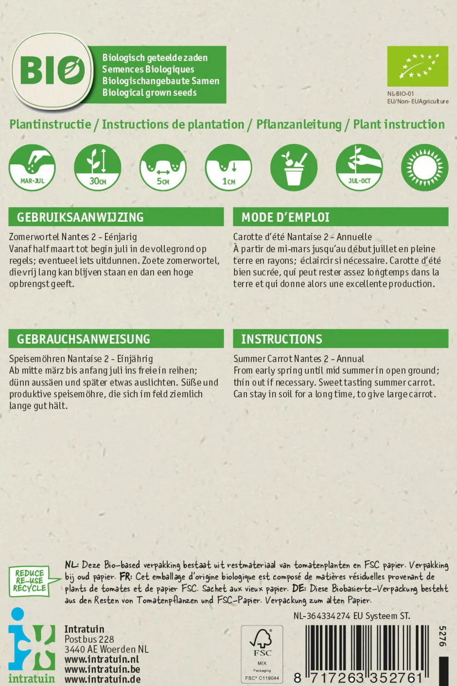Diese Möhrensorte schmeckt köstlich süß und kann lange wachsen, was ihren Ertrag erhöht. Die orangefarbenen Wurzeln werden fest und etwa 22 cm lang, sie lassen sich gut lagern. Draußen im Garten kann in der Zeit von März bis Juli in Reihen von 20 cm Abstand gesät werden. Dünne nach dem Kiemen aus, bis der Abstand zwischen den Pflanzen 3 cm beträgt. Je größer der Abstand zwischen den Wurzeln ist, desto dicker können sie wachsen. Die frühe Ernte kann von März bis Juni, die Sommerernte von Juni bis November geerntet werden.