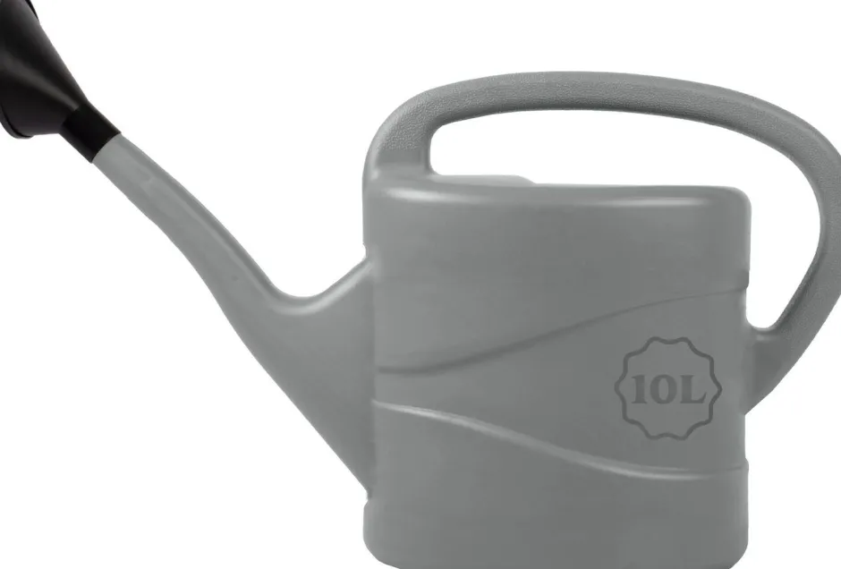 Diese Kunststoff-Gießkanne eignet sich zum zielgerichteten Gießen deiner Pflanzen. Auf den Ausguss der Gießkanne lässt sich der abnehmbare Brausekopf stecken, um einen sanfteren Wasserstrahl und eine bessere Verteilung des Gießwassers zu erzielen. Die graue Gießkanne fasst 10 Liter.