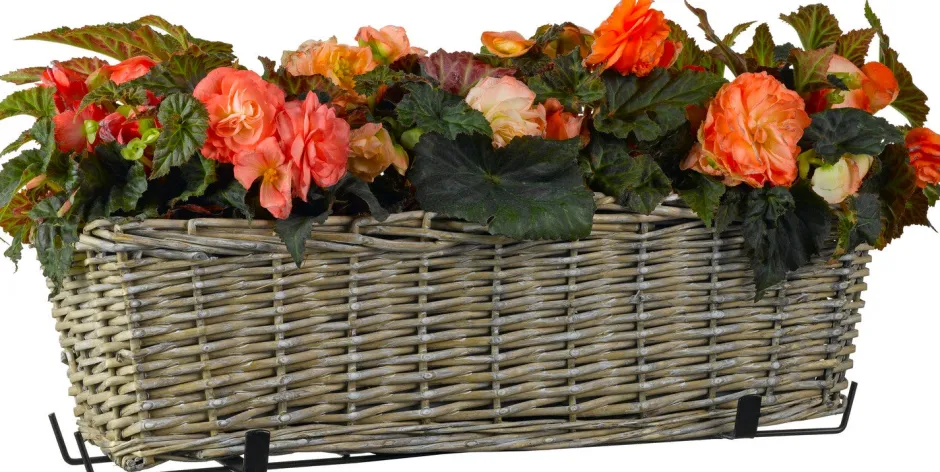 Dieser schöne Balkonkasten lässt sich einfach am Balkon befestigen und kann mit schönen Pflanzen oder Blumen kombiniert werden! Der Balkonkasten aus Korbgeflecht ist aus Schilfrohr gefertigt und hat daher eine ruhige und natürliche Ausstrahlung. Der Balkonkasten ist mit einer Kunststoff-Innenschale versehen und verstellbaren Metallhaken ausgestattet.