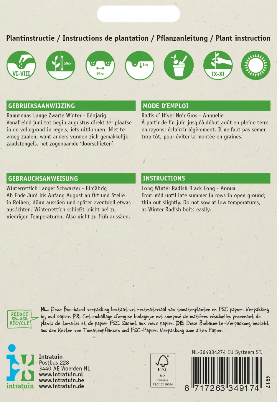 | Besonderheiten | Säen den Winterrettich besser nicht zu früh aus, da er sonst zu sehr in die Höhe schießt. |