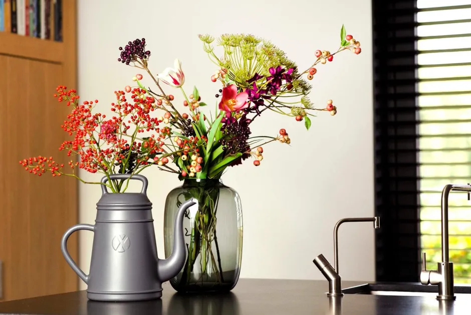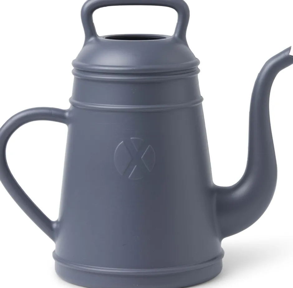 Eine übergroße Kaffeekanne als Gießkanne, Funktionalität mit einer Anspielung auf die Vergangenheit. Diese graue Gießkanne hat zwei Griffe, damit sie gut in der Hand liegt. Die Gießkanne Lungo (12 l) ist zu 100% recycelbar und ein Entwurf von Davy Grosemans.