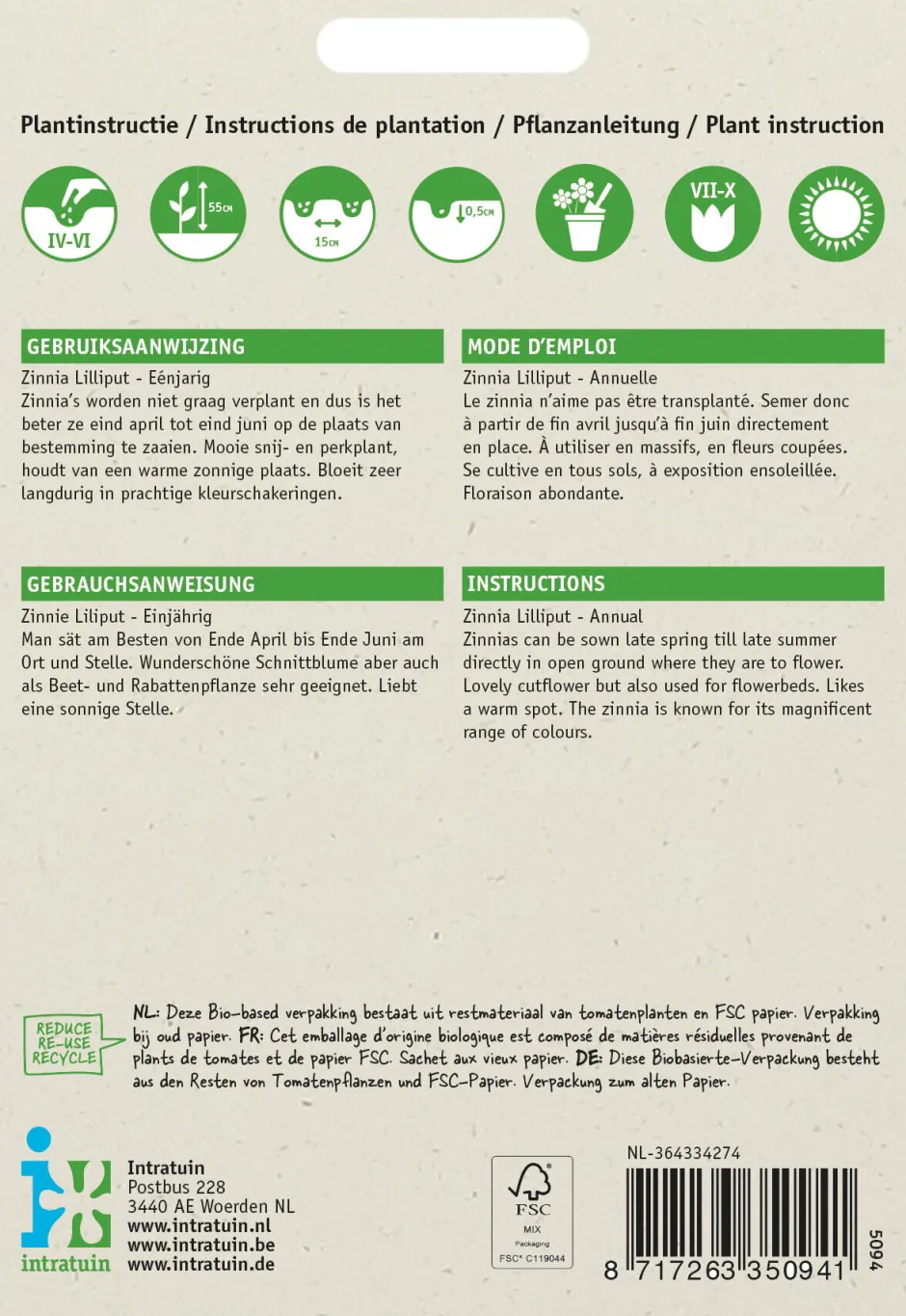 | Pflanztipps | Säe direkt am Bestimmungsort, denn die Zinnie wird nicht gerne verpflanzt. |
