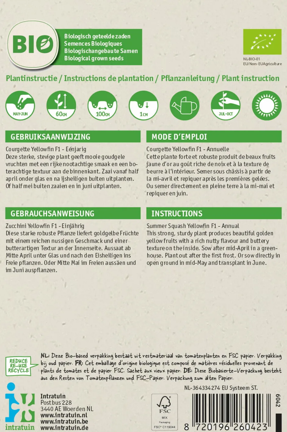 Diese Zucchini bekommt gelbe Früchte mit gutem Geschmack. Diese Sorte ist selbstbestäubend, so dass die Erträge hoch sind. Man kann sie Mitte April im Gewächshaus aussäen, in Töpfe pikieren und Mitte Mai ins Freie pflanzen. Du kannst sie auch Mitte Mai im Freiland in gut gedüngte Erde säen und im Juni an einem geschützten Ort auspflanzen. Die Früchte werden am besten in einem jungen Stadium geerntet, wenn sie 15-20 cm lang sind. Die Pflanze bildet dann noch einige Zeit lang neue Früchte. Die Pflanzen mögen einen warmen, sonnigen Platz. Im Unterglasanbau kann von Mitte Mai bis September geerntet werden, im Freilandanbau von Juli bis Oktober.